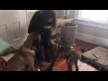 Perro enseña a su hermano menor a sentarse como un buen perrito