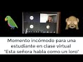 “Chicos, si están teniendo conversaciones en sus casas, silencien sus micrófonos. Creo que tengo que hablar como un loro, ya que tengo que darte la clase”, le increpó la profesora a la joven, quien solo atinó a pedir disculpas y afirmar que lo que dijo no era para ella, sino para otra persona.