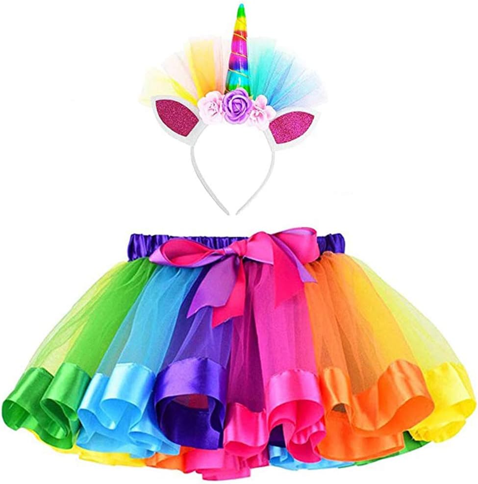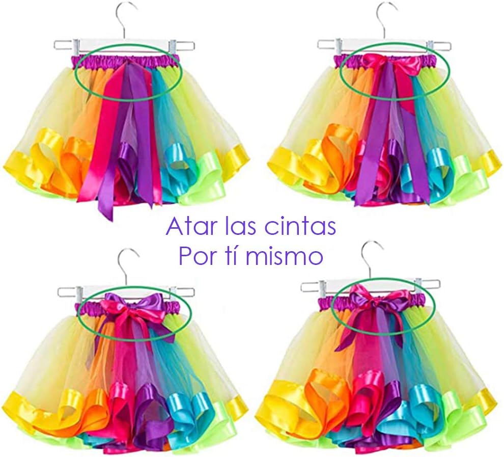 【Cualquier ocasión】 Linda falda tutú arcoiris con lindo conjunto de banda de pelo de unicornio, ideal para fiesta temática arcoiris, regalo de cumpleaños, sesiones de fotos, disfraces de Halloween, cosplay, disfraces navideños, noche escolar, fiesta de graduación, uso diario, vacaciones, baile, ballet , play play, gala y otros, mejor que el típico tutú de disfraces.