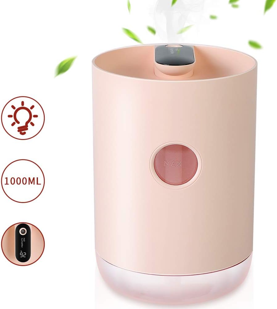 [1000ML GRAN CAPACIDAD]: La capacidad máxima del humidificador es de 1000 ml, y la niebla de pulverización es de 30-50 ml/h. Al agregar agua, aumentará la humedad, hidratará su piel, lo relajará y eliminará la fatiga para disfrutar de un mejor sueño. Y con su gran capacidad se puede utilizar toda la noche.