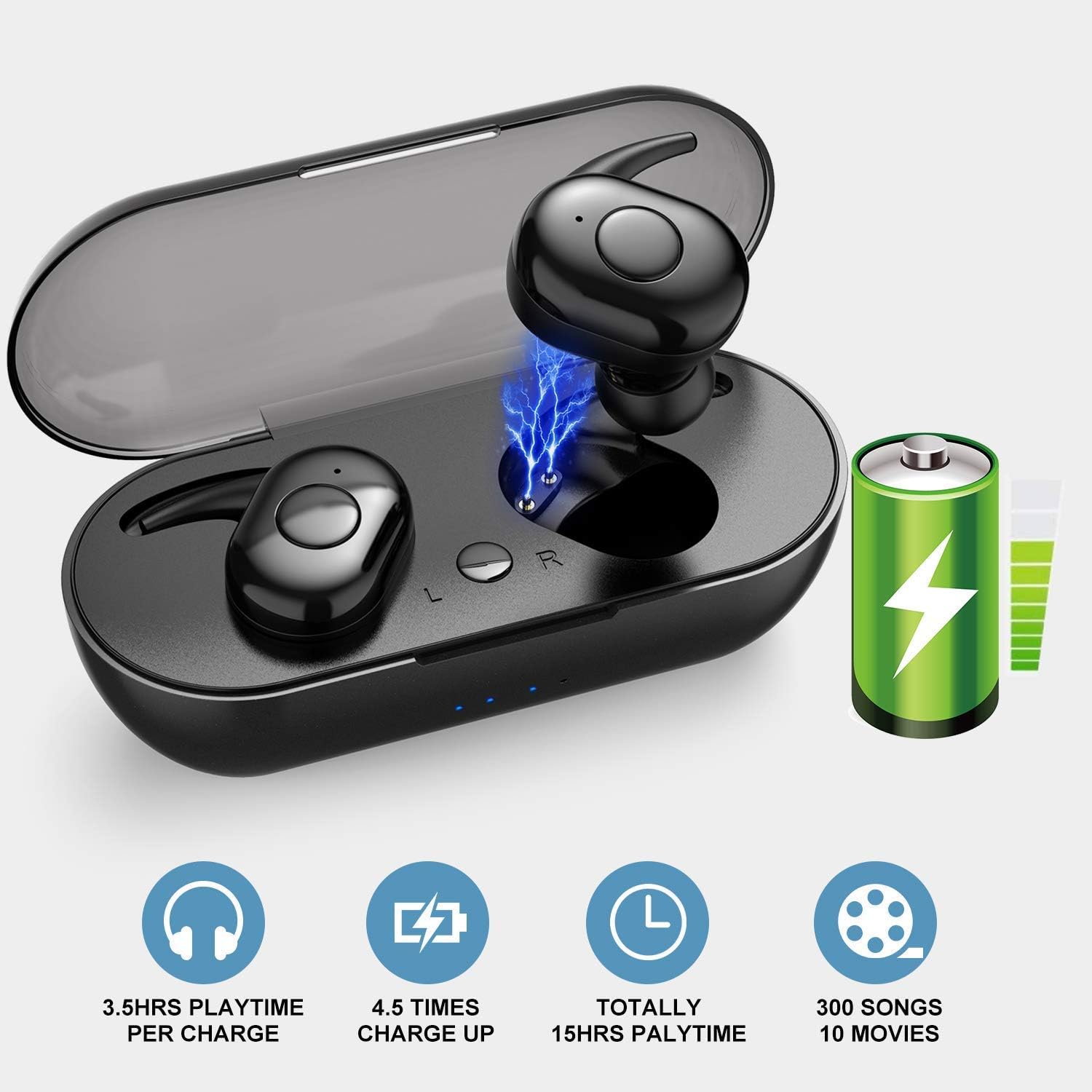 ♬ 【FÁCIL DE USAR】 El modo gemelo / modo único hace que pueda usar cualquiera de ellos como desee. No necesita ninguna habilidad para usar los auriculares Bluetooth. Una vez abierto el estuche de carga, los auriculares inalámbricos se emparejarán con su dispositivo al instante. El bluetooth V5.0 lo hace obtener una velocidad de transmisión 2 veces más rápida + conectividad más estable sin pérdida de señal o pérdida de música.