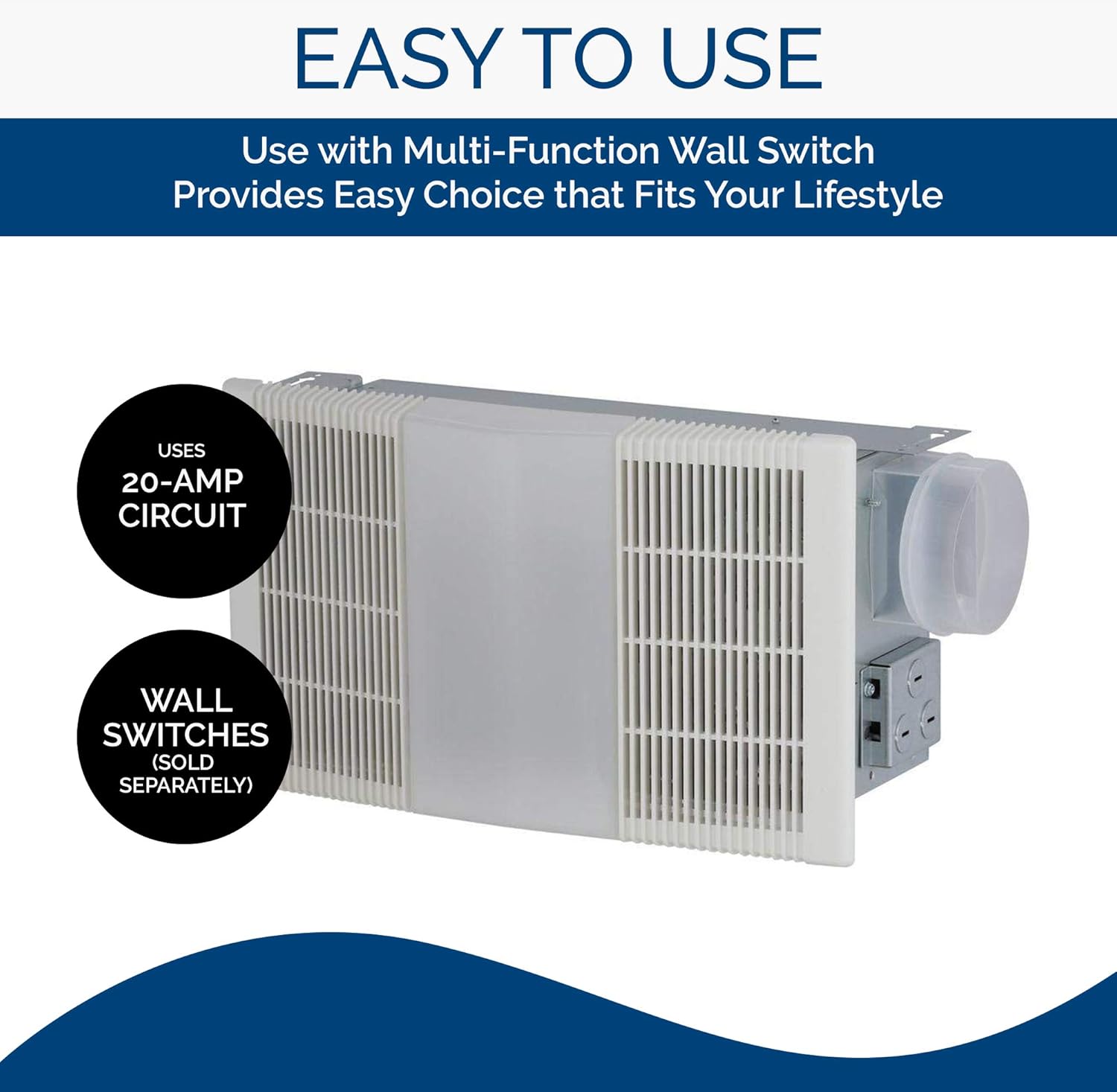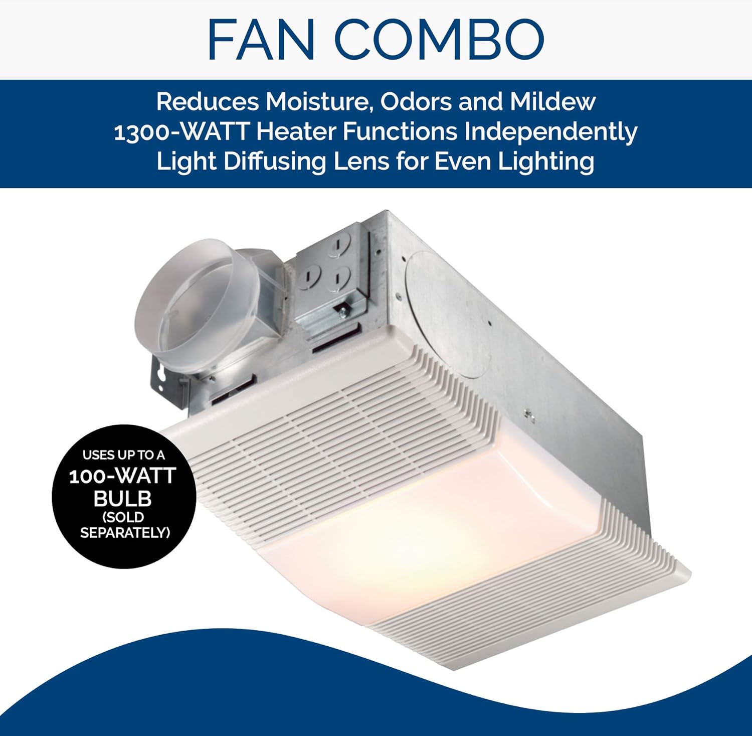 Combinación de ventilador: el combo incluye ventilador, luz incandescente de 100 vatios y calentador de 1300 vatios que funciona de forma no empotrado o conjunta para proporcionar comodidad a tu baño.