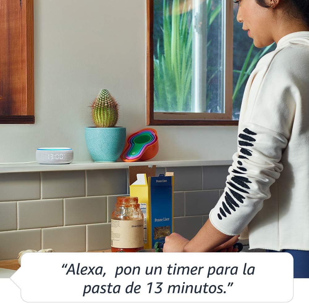 Lista para ayudar – Pídele a Alexa que ponga música, responda preguntas, te dé las noticias, te diga el clima, ponga alarmas, controle dispositivos de Casa Inteligente compatibles y mucho más.