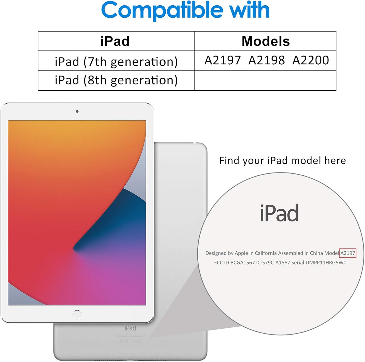 Exclusivamente para el nuevo iPad 7 (10,2 Pulgadas, 2019 Modelo, 7ª Generación). Apto para modelos de iPad: A2197 / A2200 / A2198. NO es compatible con ningún otro modelo de iPad