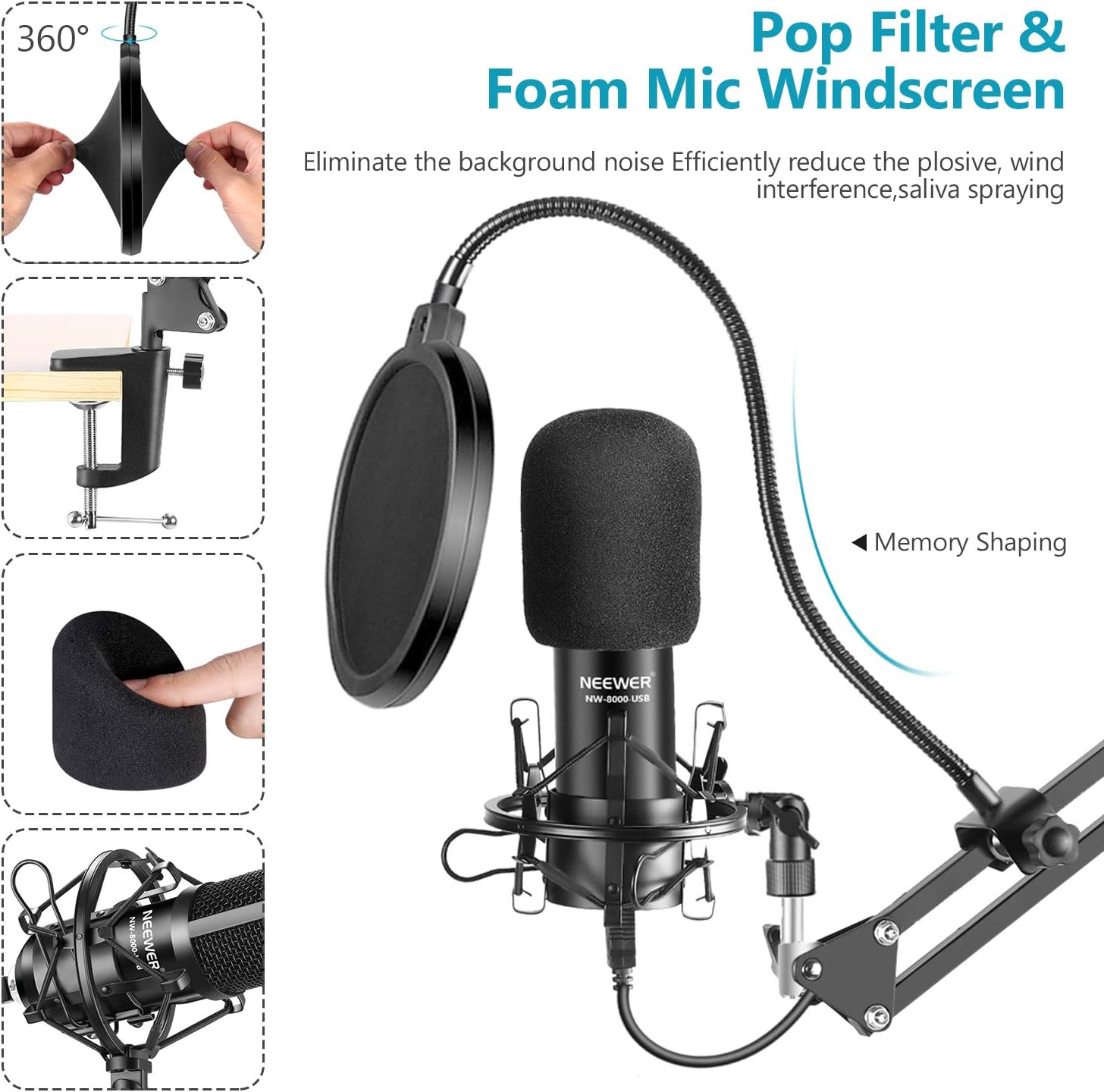 NW-35 BOOM ARM SET: Con un filtro pop y una tapa de espuma de parabrisas del micrófono, el micrófono de condensador graba su voz y el sonido es cristalino. El soporte antichoque mantiene el micrófono estable con la función de amortiguación. Particularmente bueno para voces en off de video; podcasts; Video de Youtube; conferencias de Skype, etc. Cada longitud del brazo: 14 pulgadas / 35 centímetros. Capacidad máxima del soporte del brazo de la pluma: 1 kilogramo / 2,2 libras