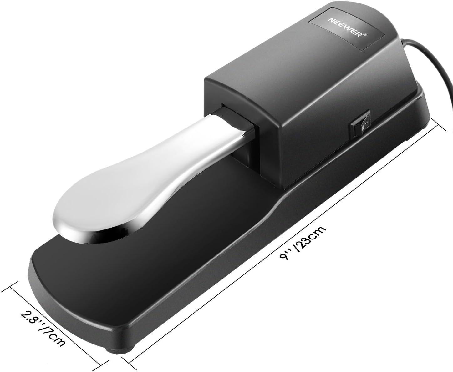 Compatible with any electronic keyboard with 1/4 input jack;Neewer Piano-style pedal with a 5ft cable and 1/4 inch Plug. Designed to work and feel just like an acoustic piano's sustain pedal;This high-quality pedal features a polarity switch making it compatible with virtually any keyboard;Anti-slip design. this pedal features 4 rubber on the bottom that prevents it from slipping when used in piano/keyboard performances;Chrome plated metal pedal, high strenth plastic shell, sturdy and durabal