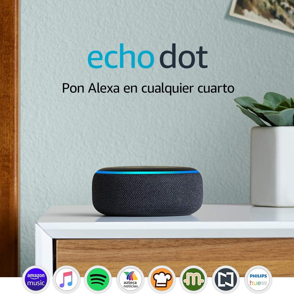 Nuestra bocina más popular - Echo Dot es una bocina inteligente que se controla con la voz y te conecta con Alexa a través de red Wi-Fi.
