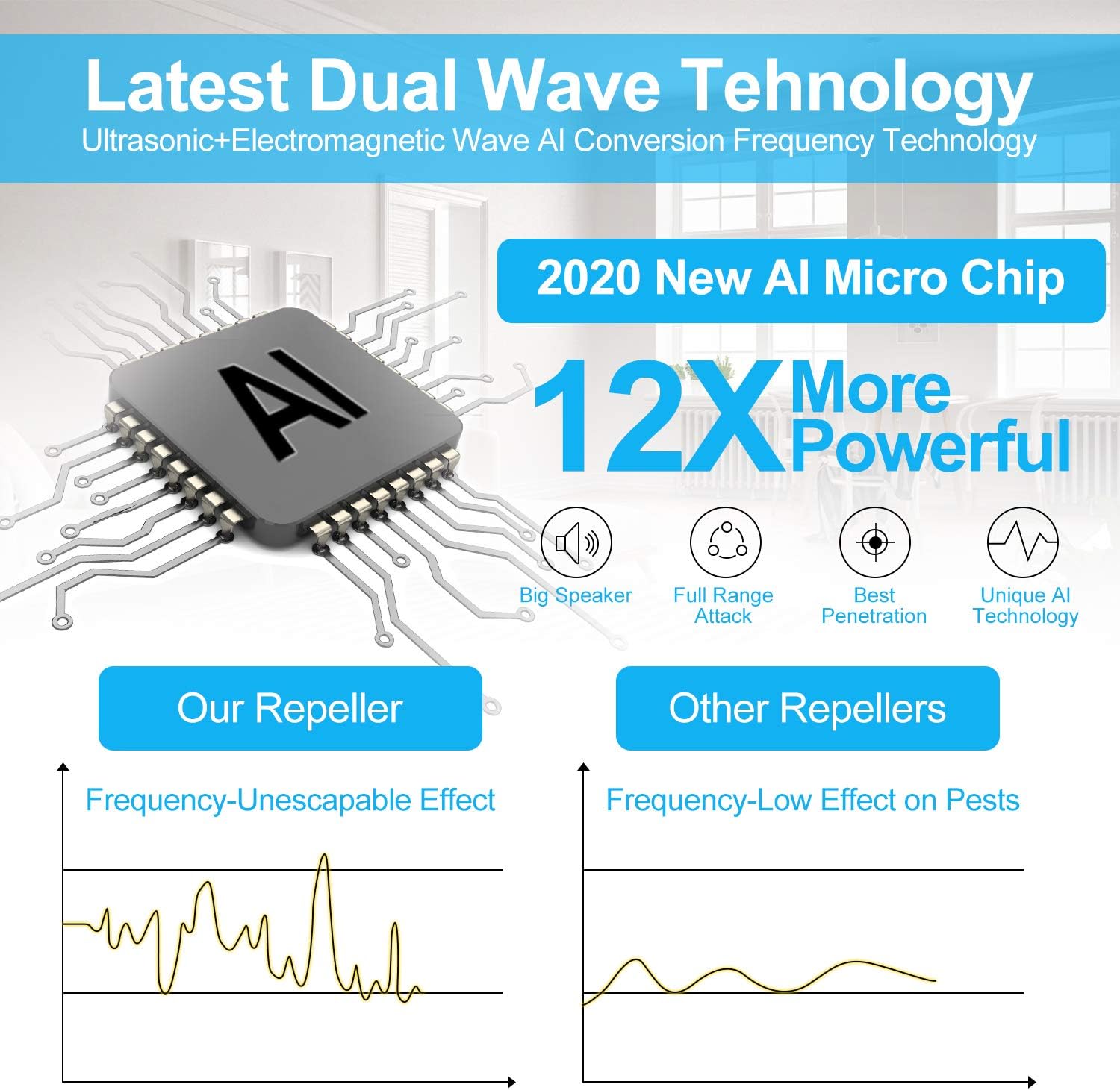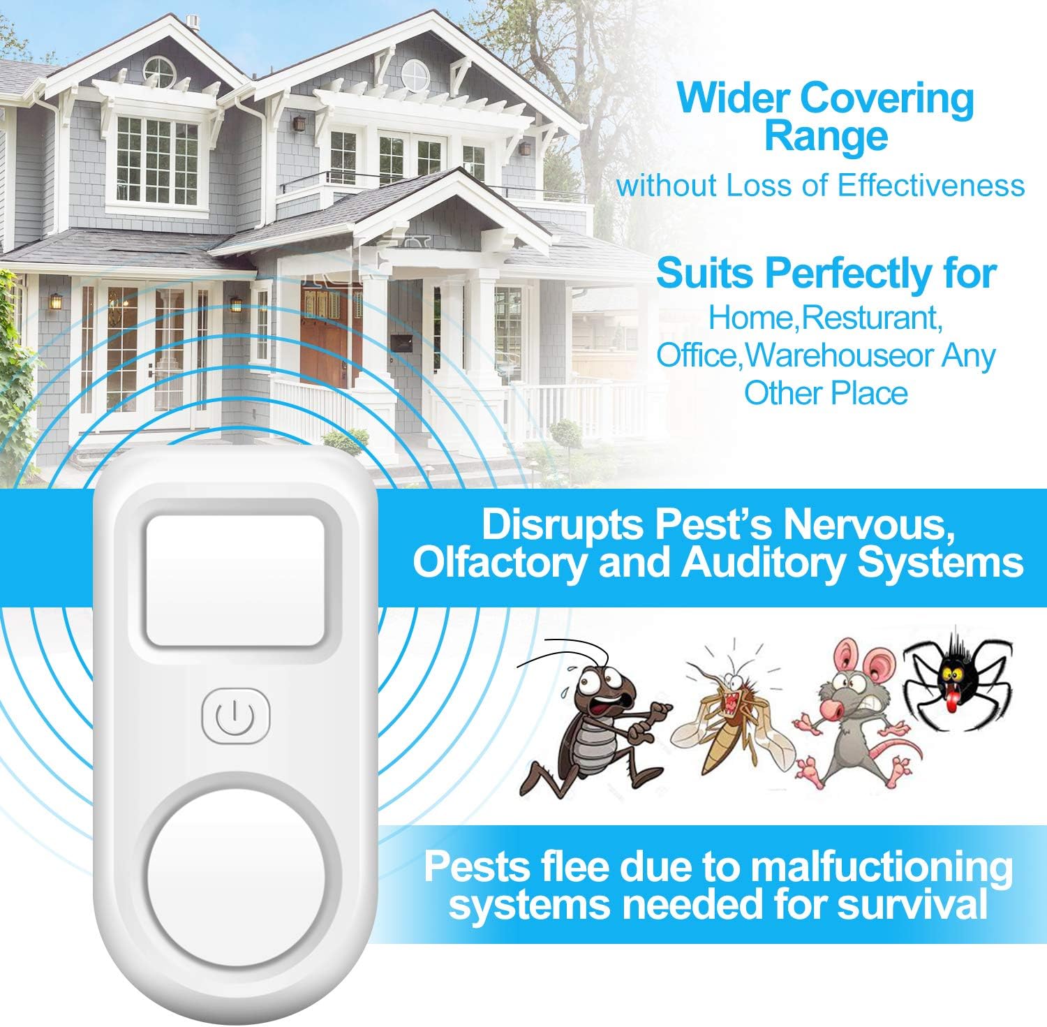🏠【Amplia cobertura efectiva】La versión mejorada del repelente de mouse de doble altavoz mejorado tiene más potencia y una penetración más fuerte.El rango de cobertura es de hasta ≤200 ㎡. Este repelente de insectos se usa ampliamente en cocina, sala de estar, dormitorio, baño, almacén y sótano, etc. Si el área es grande o hay muchas habitaciones, se recomienda instalar más de dos para lograr mejores resultados.