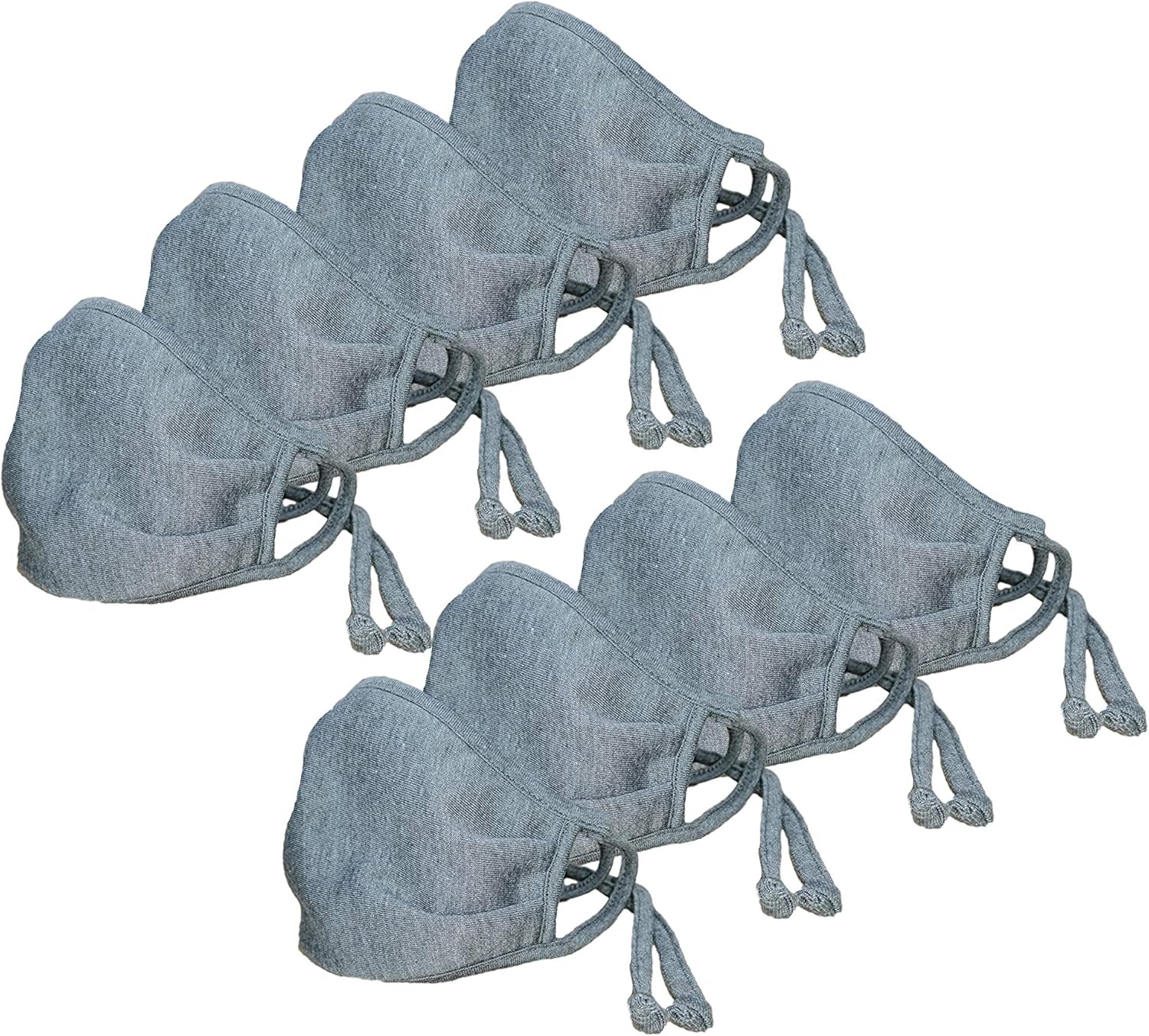 Paquete con 8 cubrebocas.- Talla única para adulto. AJUSTABLES - Color Gris Oxford