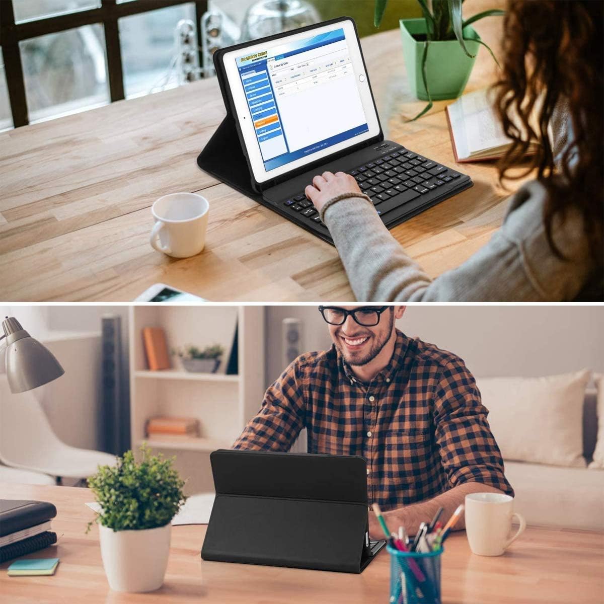 3. IPAD SE CONVIERTE EN UN ORDENADOR -- Esta funda con teclado iPad admite la visión de múltiples ángulos. Puede ajustar los ángulos para satisfacer sus necesidades visuales. Convierte su iPad en un MacBook y ajustar el ángulo de visión a cualquier nivel fácilmente. Perfecto para trabajar, escribir o mirar videos en los negocios, la escuela, los viajes y el hogar.