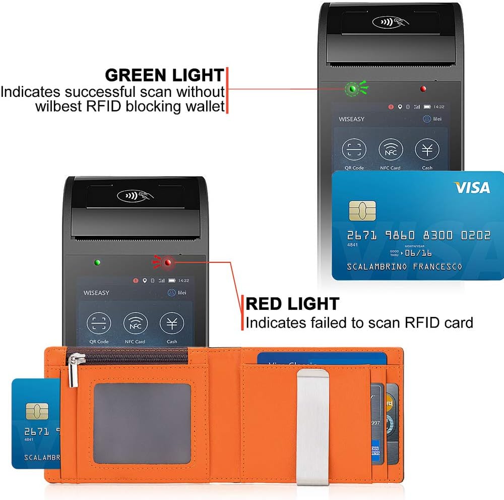 RFID LESER RESIDUOS BLOQUEADO. Mientras que otros sufren robo de identidad, no lo harás. RFID Blocking Carteras minimalistas combinan practicidad con seguridad. Será capaz de almacenar billetes y tarjetas y estar protegido contra escaneos RFID NFC y BLE injustificados. Se probó para bloquear señales de frecuencia de 13,56 MHz de tarjetas de crédito, licencias de conducir e identificaciones, protegiendo la información valiosa almacenada en chips RFID para que no sean robadas.