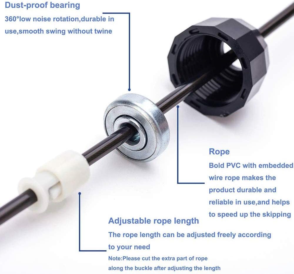 【Cable de Acero Recubierto de PVC Ajustable Sin Enredos】El ajustador de la longitud de la cuerda dentro de cada asa permite que la cuerda se pueda ajustar rápidamente a la longitud o altura deseadas. Apto para todos los miembros de la familia(adultos, hombres, mujeres, niños, niños, niños y niñas) y todos los niveles de experiencia.