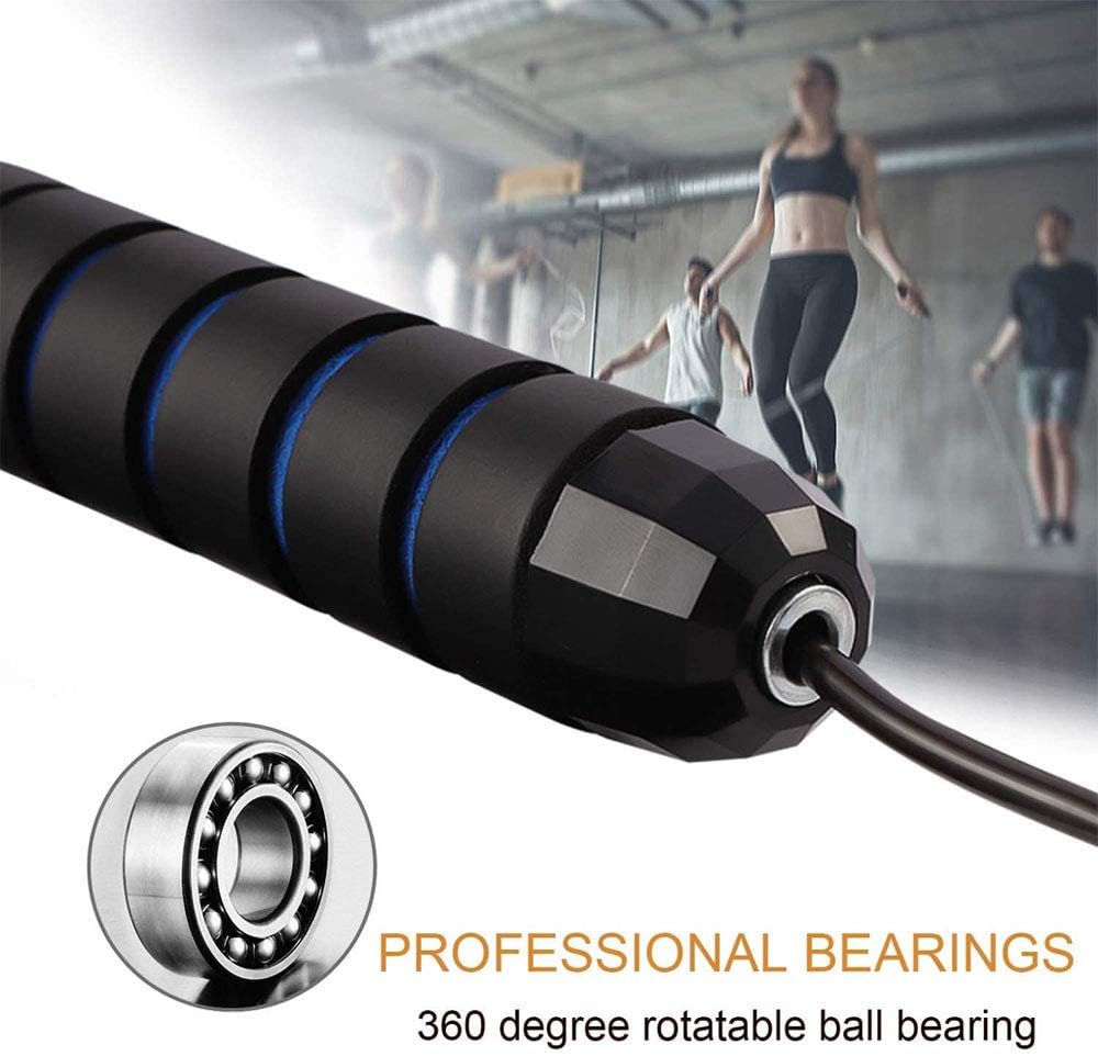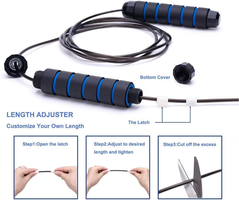 【Practico y Completo】Con el cable de 2,5 mm de grosor de acero entrelazado y recubrimiento de PVC vas a conseguir mejorar tu velocidad en los saltos, que te dure mucho tiempo y evitar que se enrede. La comba es perfectamente ajustable a tu altura y esto te permite también compartirla con todas las personas de la casa. Con su cable de 300cm de largo puede ser usada por personas de hasta más de 2M de altura.