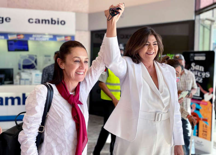 Al respecto, Sheinbaum calificó en Twitter a la candidata morenista como ‘gobernadora’ y publicó una foto de ella levantándole la mano.
